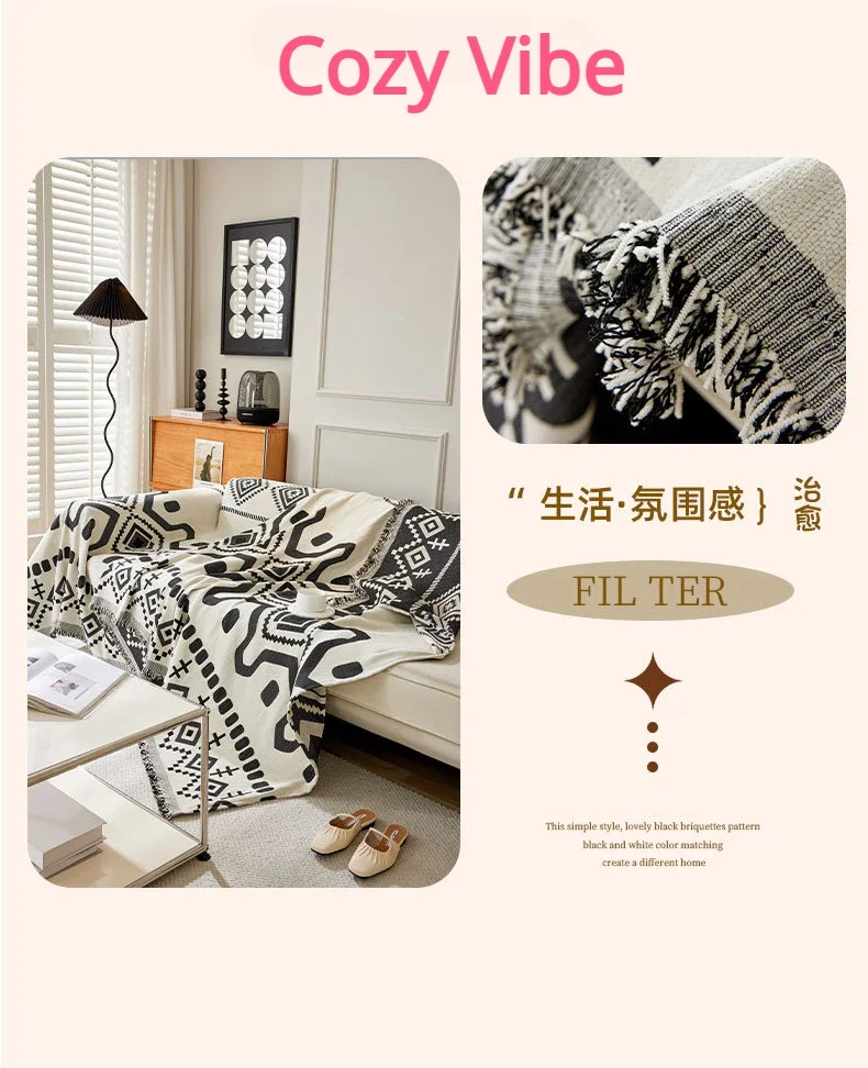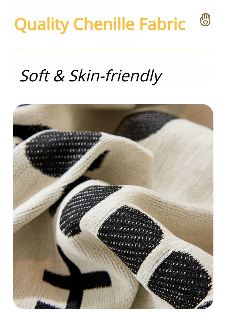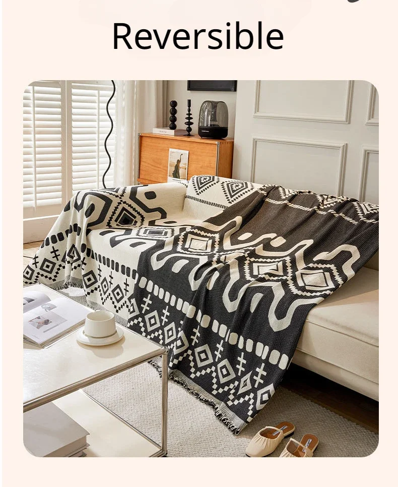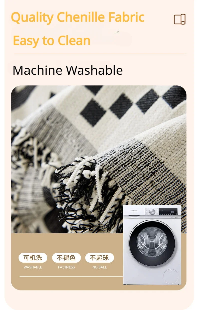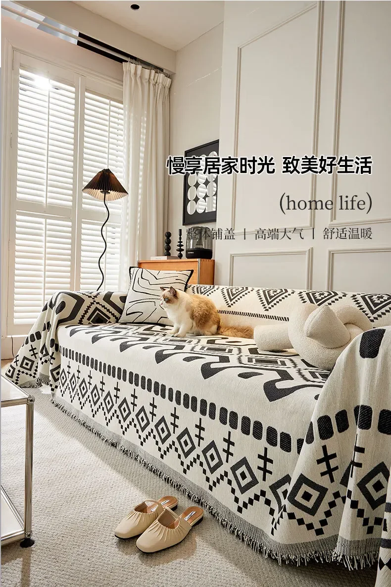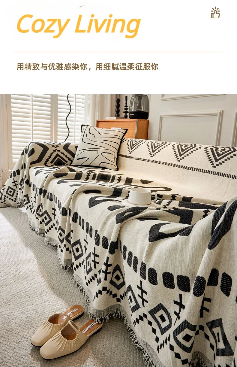 This boho geometric chenille throw sofa cover features soft, textured fabric with a stylish design. It provides full coverage while remaining breathable and comfortable. Ideal as a decorative couch blanket or furniture protector, it adds a cozy and modern touch to any living space. Machine washable for easy care.