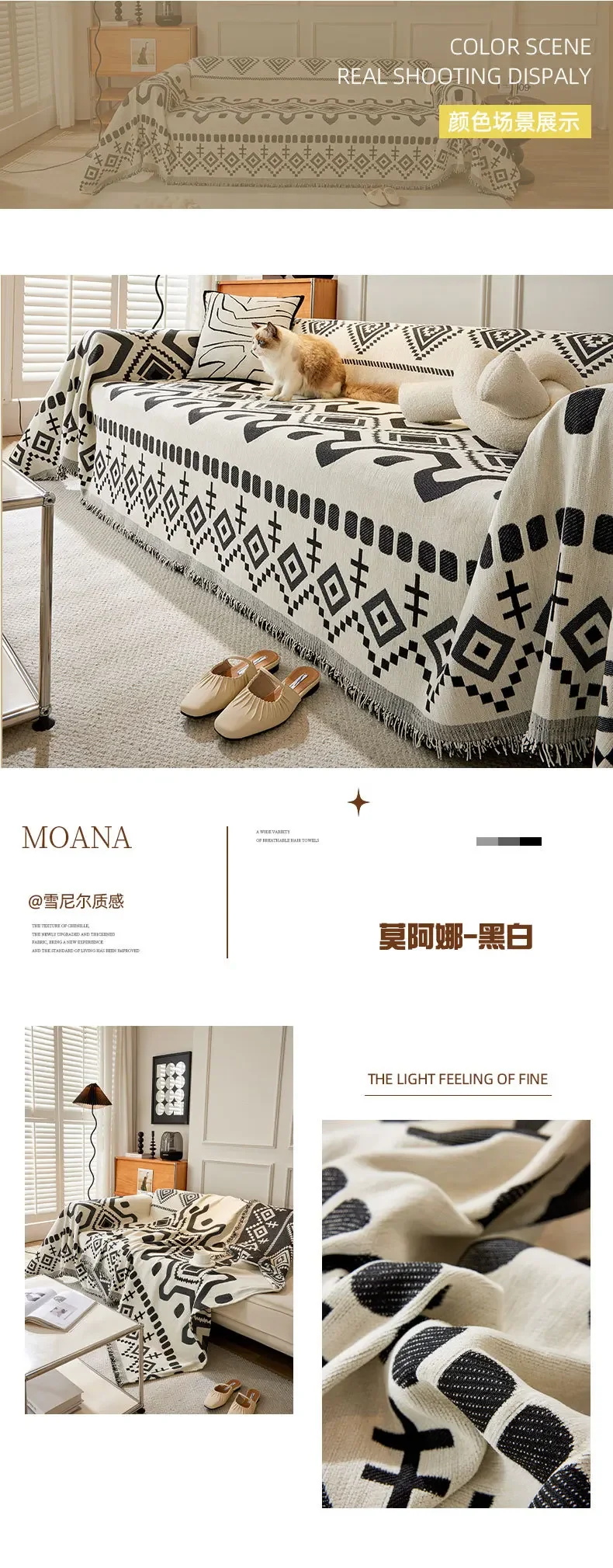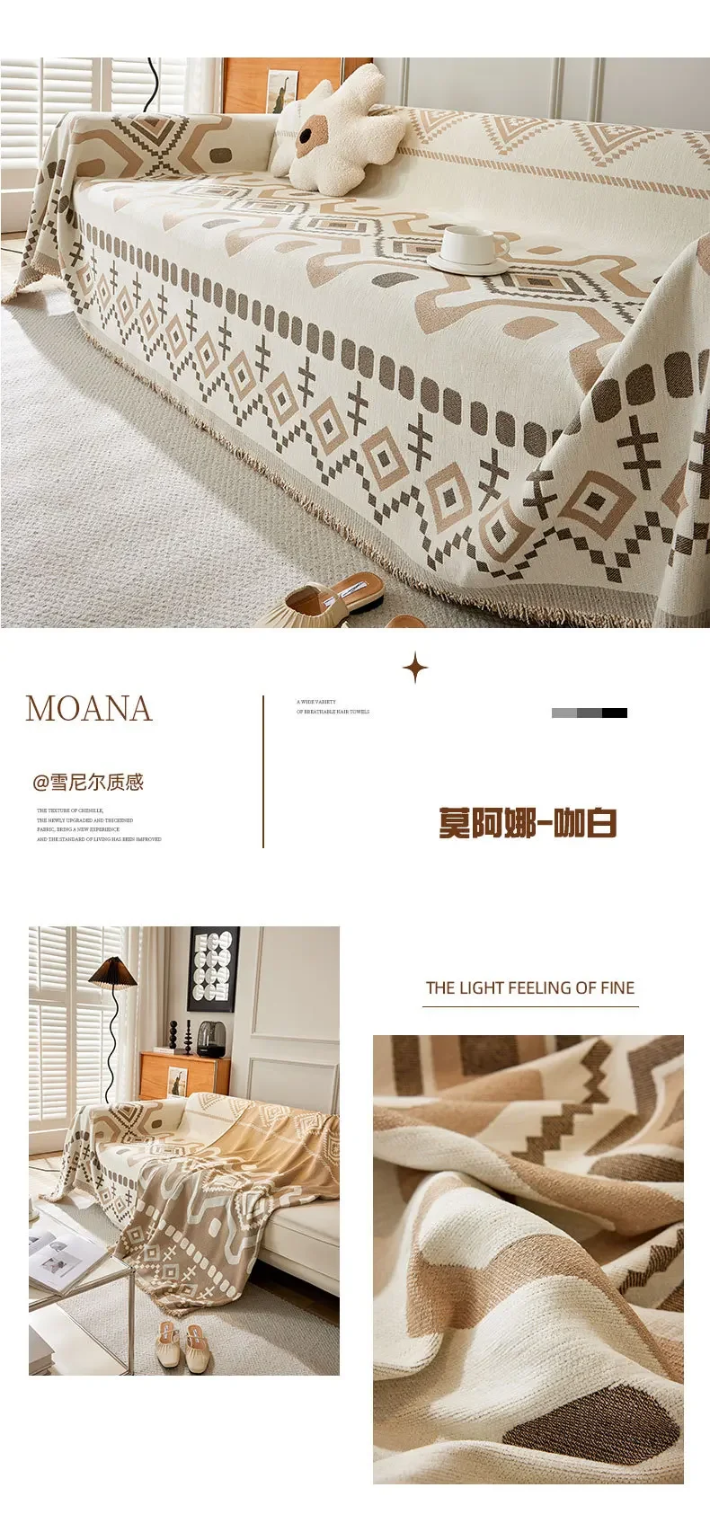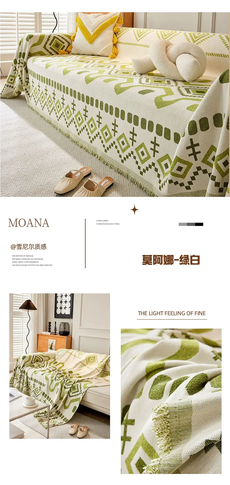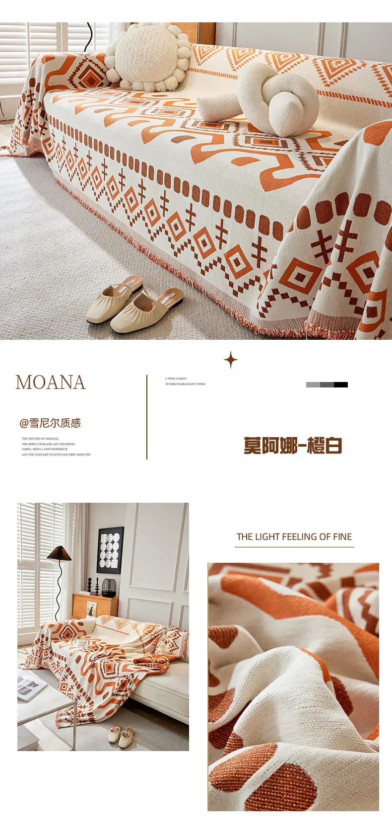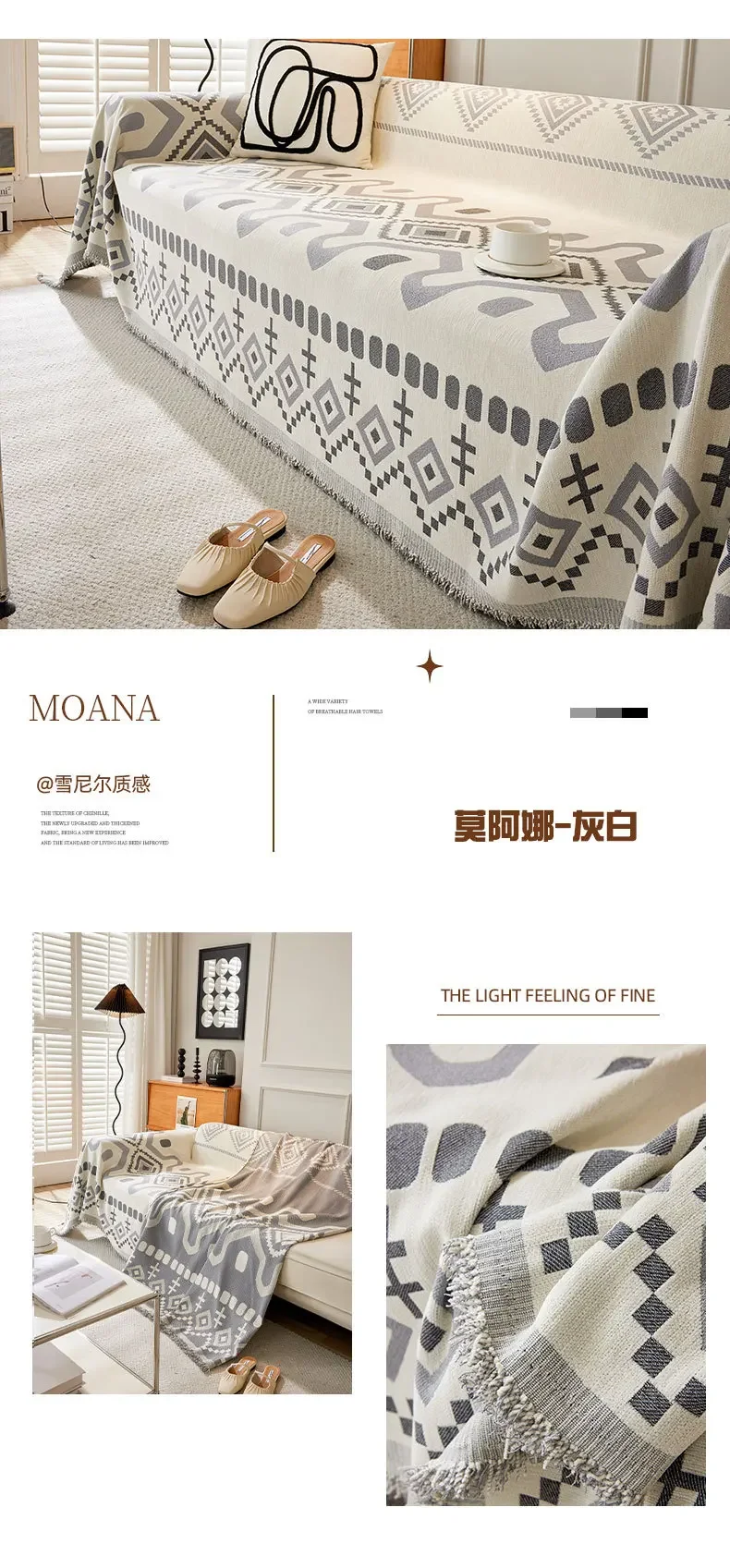 This boho geometric chenille throw sofa cover features soft, textured fabric with a stylish design. It provides full coverage while remaining breathable and comfortable. Ideal as a decorative couch blanket or furniture protector, it adds a cozy and modern touch to any living space. Machine washable for easy care.