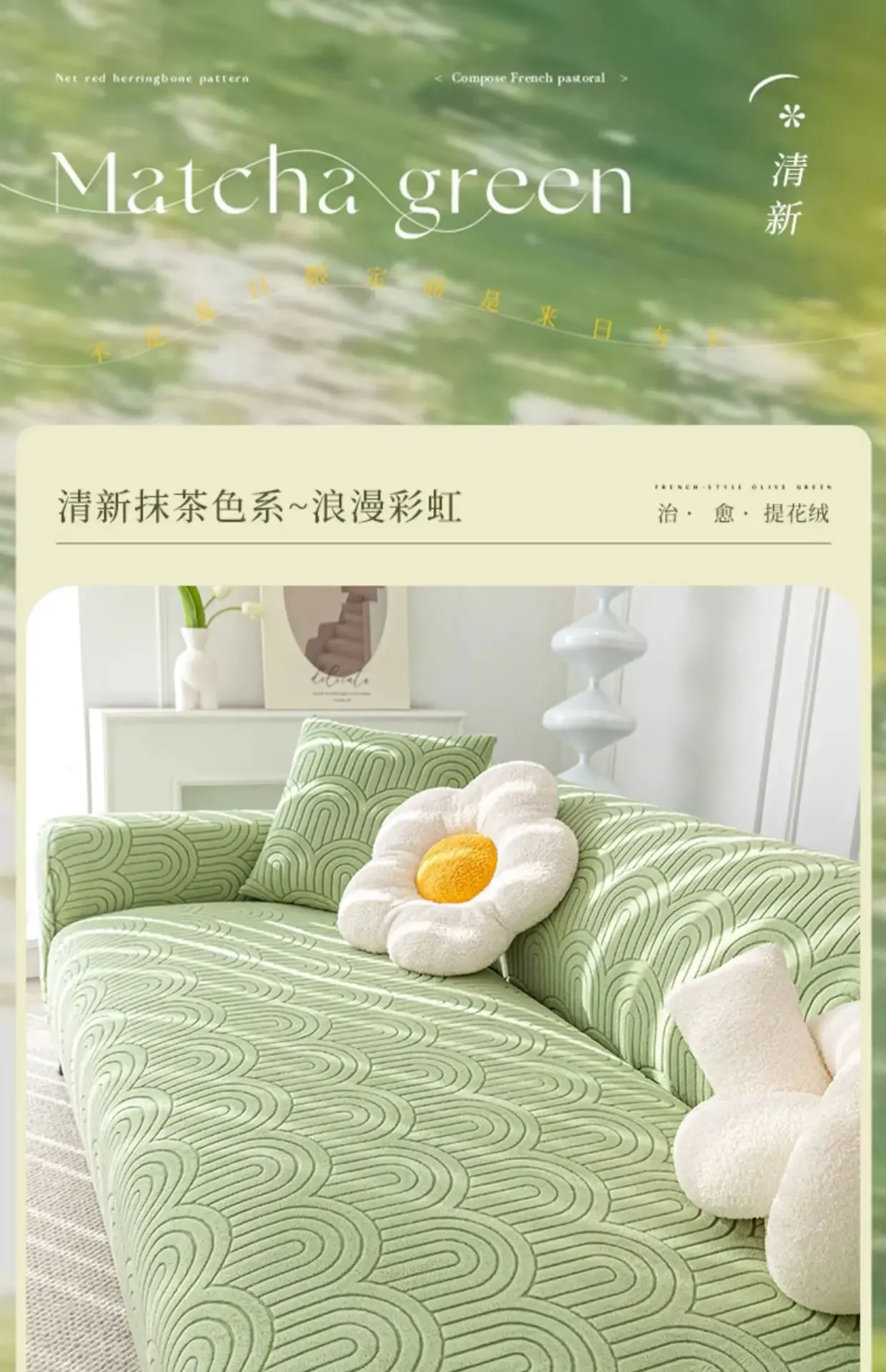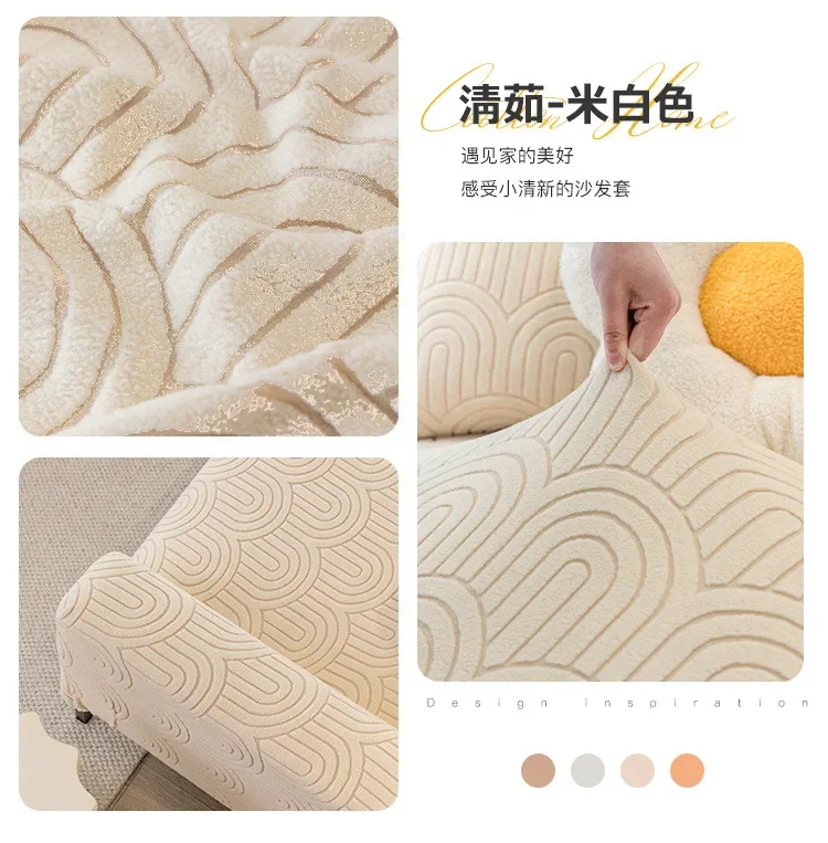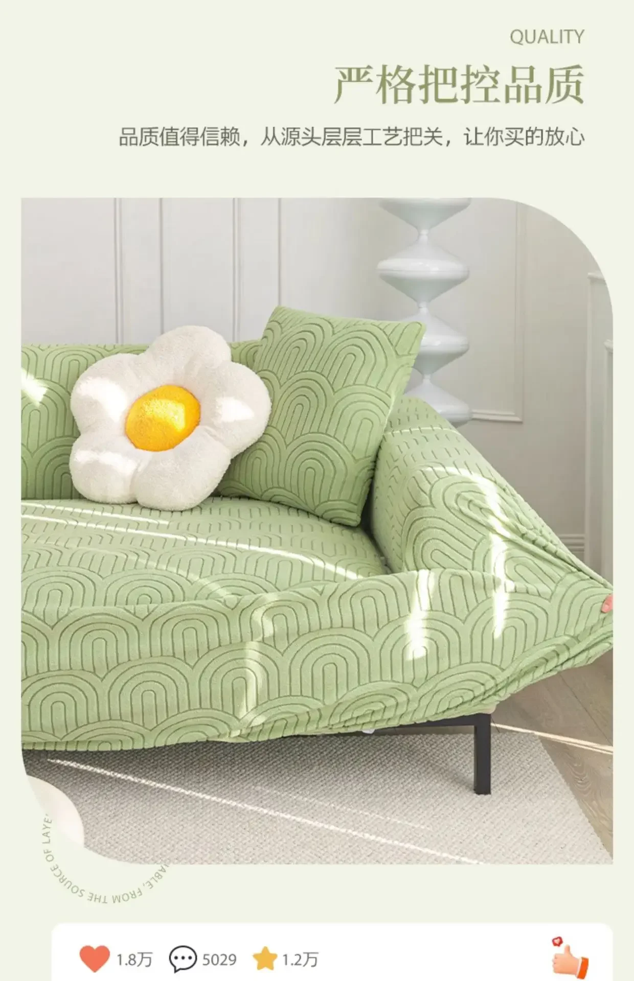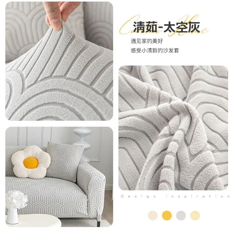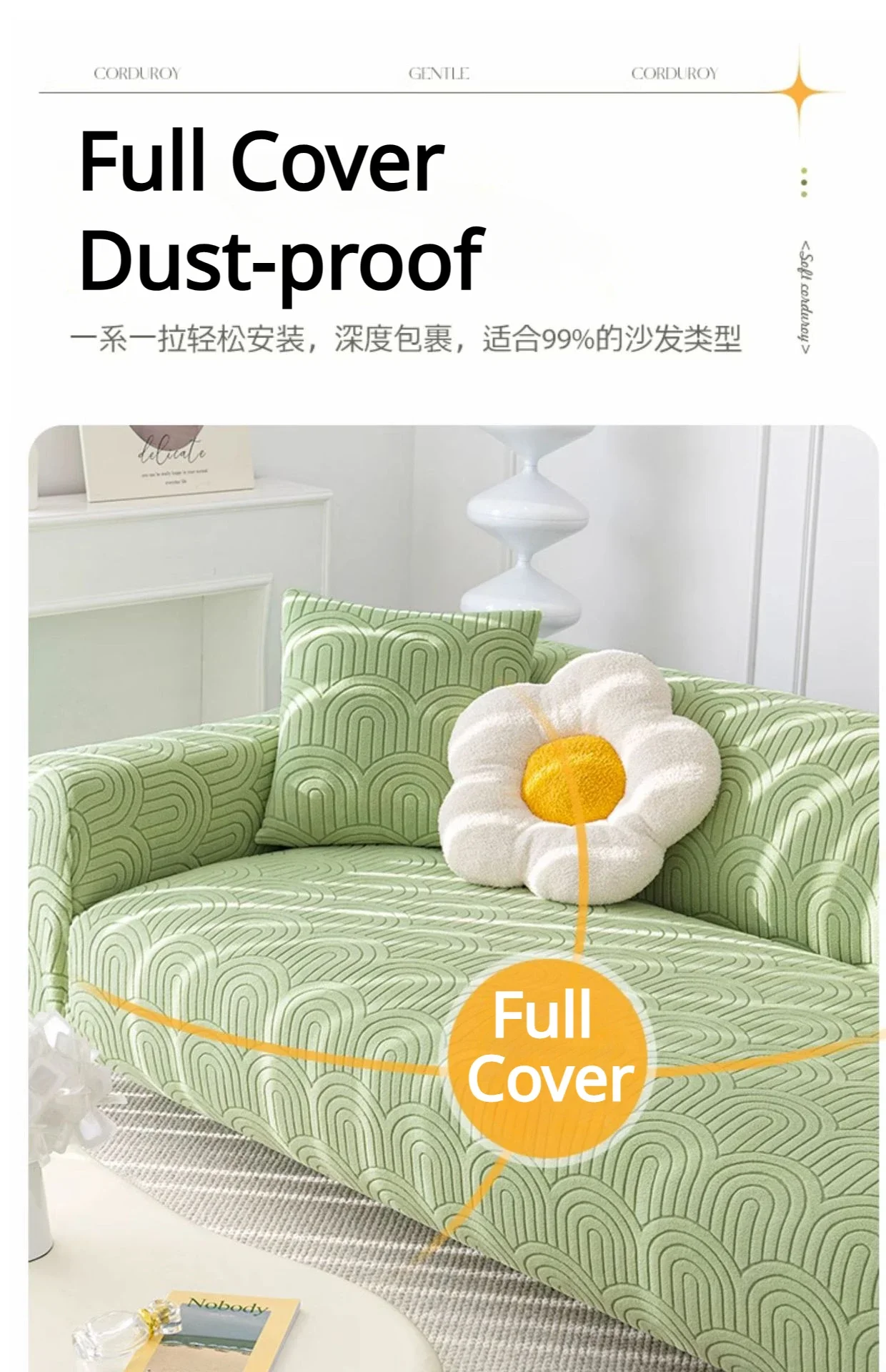 This stretch sofa slipcover features a modern geometric wave pattern with a textured finish. Made from soft, elastic fabric, it provides a snug fit and protects against spills, stains, and pet scratches. Its stylish design enhances any living space, making it perfect for refreshing old furniture or safeguarding new pieces.