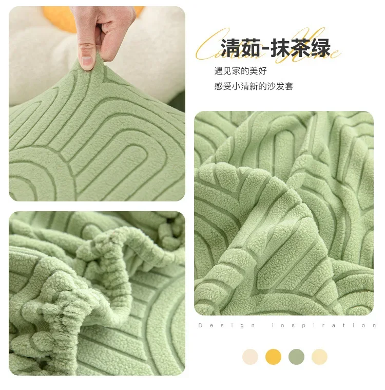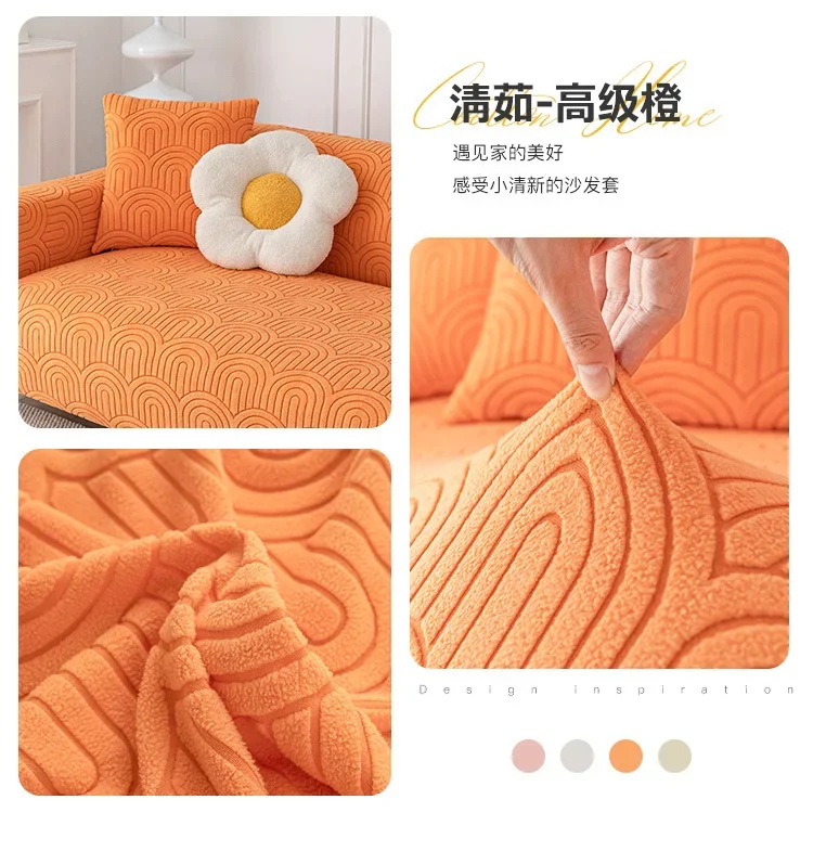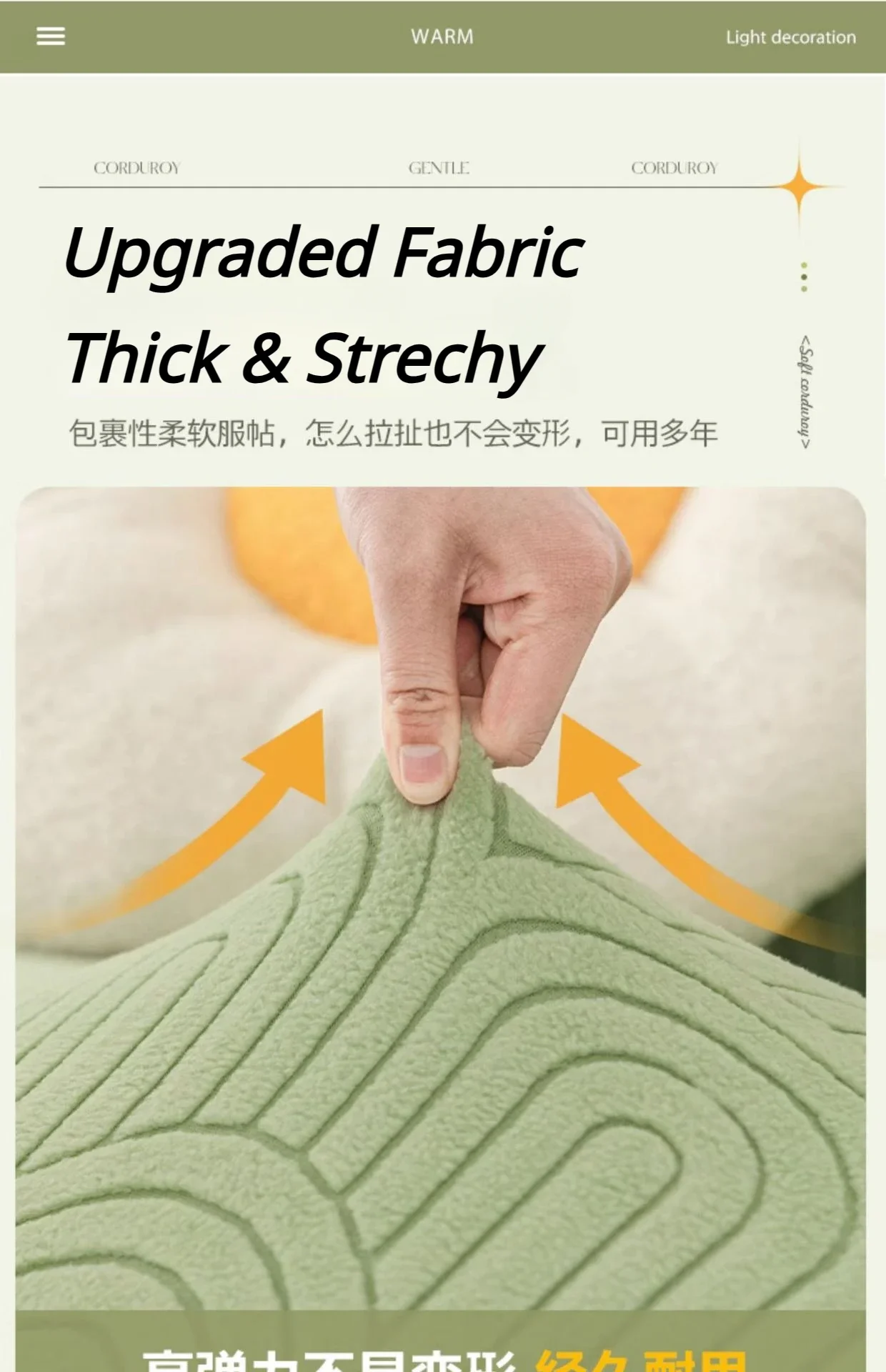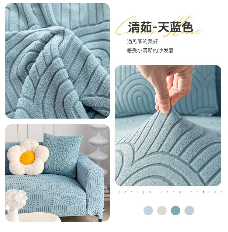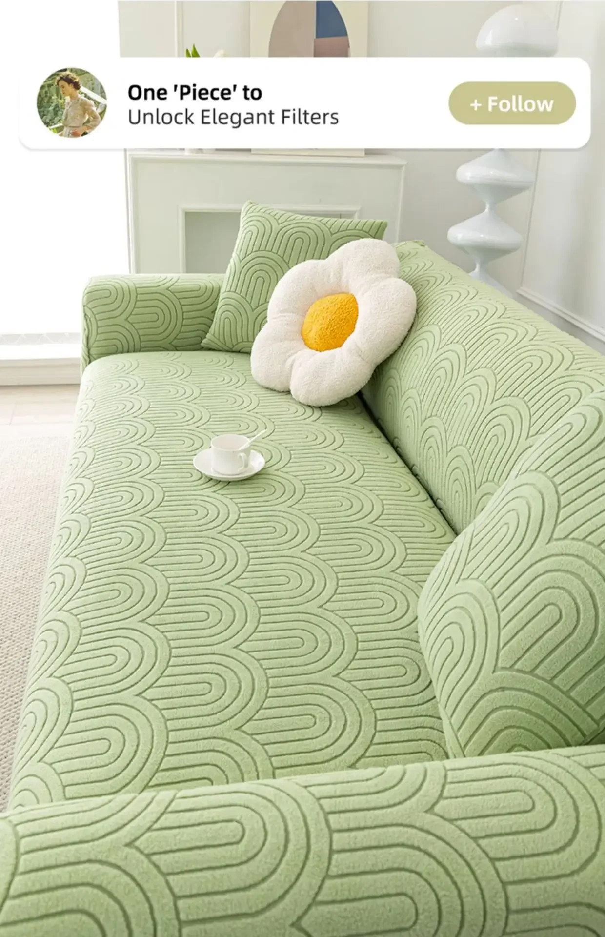 This stretch sofa slipcover features a modern geometric wave pattern with a textured finish. Made from soft, elastic fabric, it provides a snug fit and protects against spills, stains, and pet scratches. Its stylish design enhances any living space, making it perfect for refreshing old furniture or safeguarding new pieces.